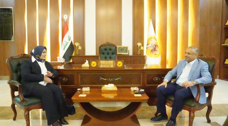 استقبل محافظ صلاح الدين، السيد بدر الفحل، اليوم الخميس، رئيس هيأة مراقبة الواردات الاتحادية، السيدة سوزان عبدالله، ومدير عام دائرة