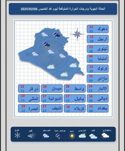طقس العراق.. عواصف رعدية وأمطار وثلوج بدءا من الغد