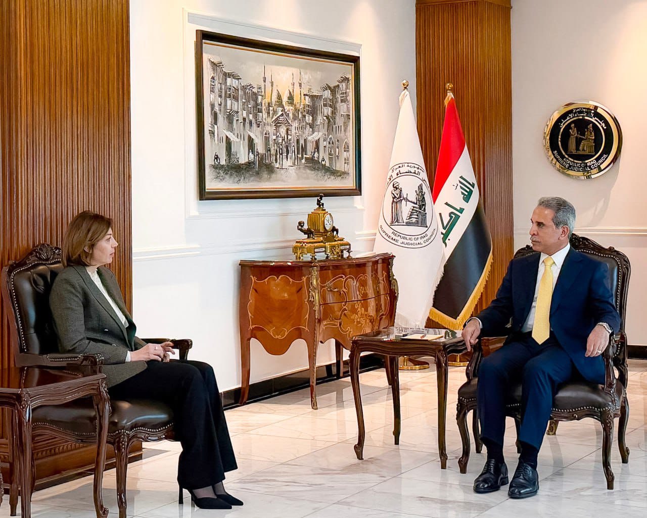بحث رئيس مجلس القضاء الأعلى فائق زيدان، اليوم الاثنين ، مع وزيرة الهجرة والمهجرين إيفان فائق، ملف إعادة النازحين في لقاء جرى بمقر المجلس.