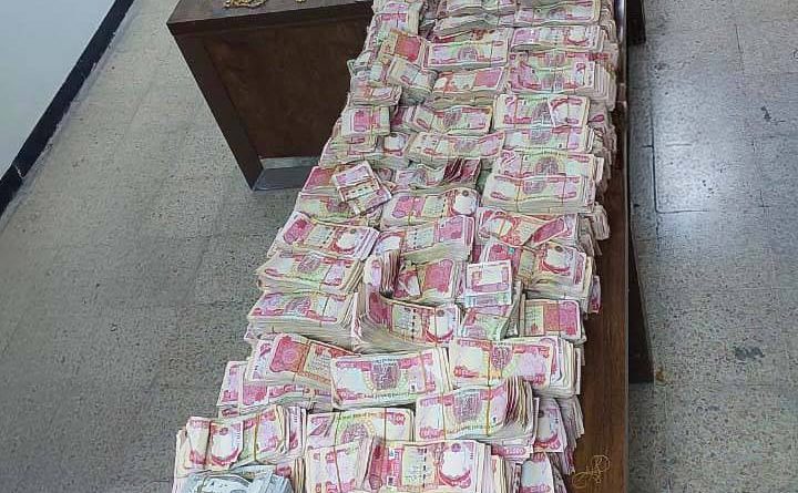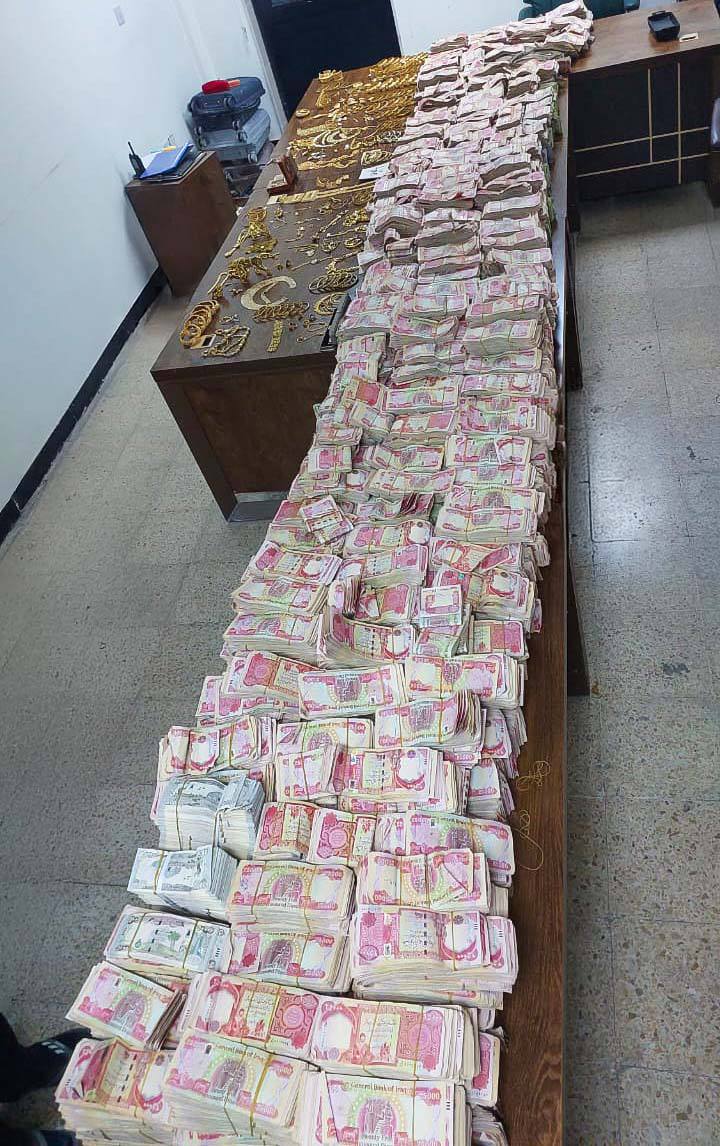 وذكر إعلام القضاء الأعلى أن “مقدار المبلغ المضبوط بلغ ثلاثة مليارات وثلاثمئة مليون دينار بعدما تم إخفاء هذا المبلغ داخل هيكل في منطقة الشعب مع مجموعة كبيرة من الحلي الذهبية”.