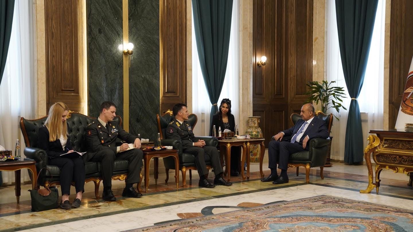 استقبل وزير الدفاع، ثابت محمد العباسي، في مكتبه بمقر الوزارة، يوم الثلاثاء الموافق 13 أيار 2025، قائد بعثة حلف شمال الأطلسي (الناتو) في العراق، الفريق لوكاس شخويرس، والوفد المرافق له.