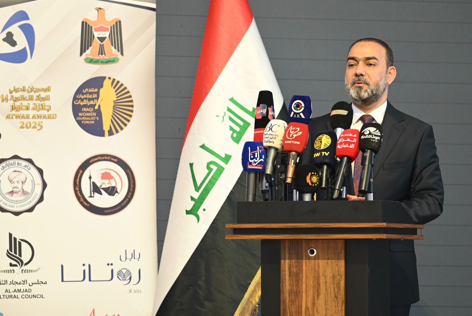 جاء ذلك خلال كلمته في افتتاح في أعمال النسخة الرابعة عشرة من المهرجان الدولي للمرأة العربية، الذي نظمه منتدى الإعلاميات العراقيات برعاية دولة رئيس الوزراء وهيأة الإعلام والاتصالات، .