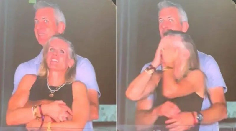 وخلال الحفل الذي أقيم في ملعب “جيليت”، ظهرت لقطة على الشاشة العملاقة لرجل وسيدة وهما يتبادلان لحظة عاطفية، قبل أن تبادر السيدة إلى تغطية وجهها بسرعة ومغادرة المكان، فيما انحنى الرجل محاولا تفادي الكاميرا، ما دفع المغني الرئيسي للفرقة، كريس مارتن، إلى التعليق مازحا: “يبدو أنهما يعيشان علاقة سرية”.