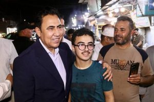 والتقى عدداً من المواطنين واصحاب المحال التجارية واستمع إلى آرائهم واطّلع على أحوالهم وناقش معهم احتياجاتهم ومتطلباتهم بهدف تعزيز الواقع الخدمي والاقتصادي في المدينة.