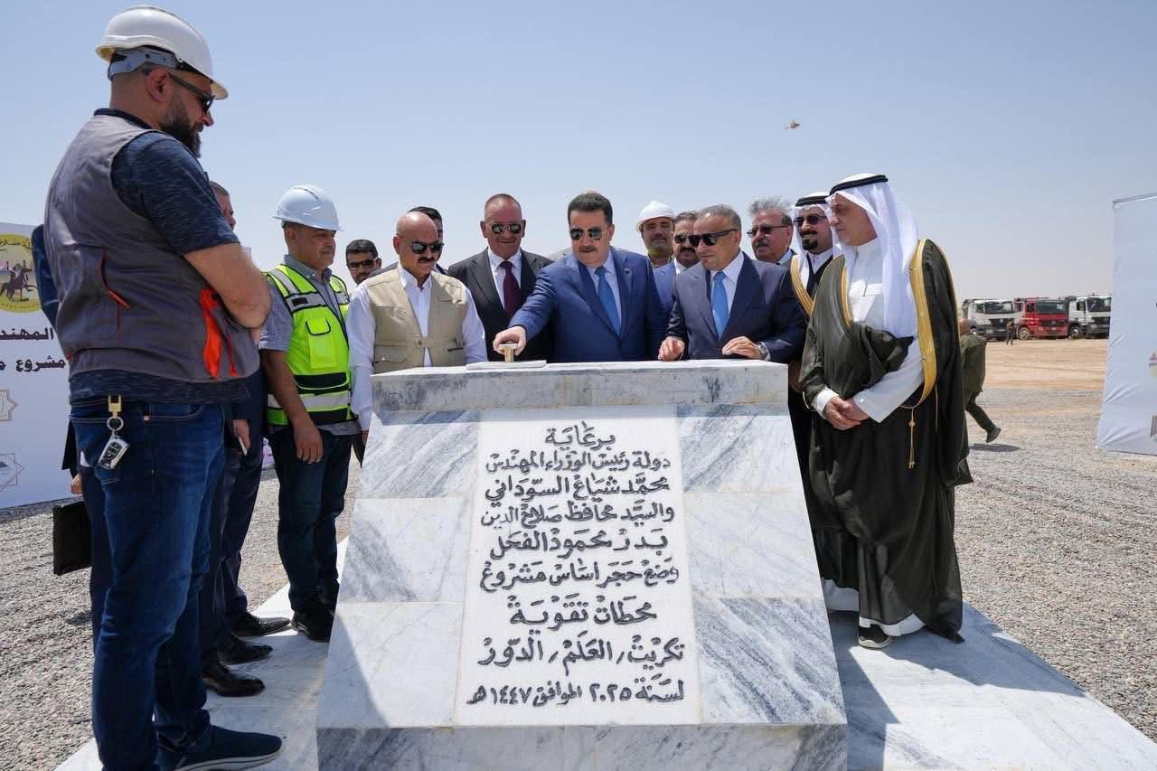 وضع رئيس مجلس الوزراء، محمد شياع السوداني، قضاء و محافظ صلاح الدين، بدر الفحل، حجر الأساس لمحطات تقوية لمشروع ماء – تكريت- العلم – الدور .