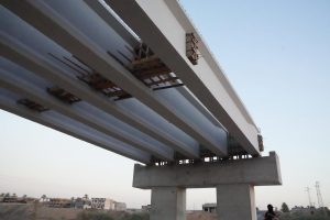وتابع المحافظ الأعمال الفنية التي شملت ،تنصيب الروافد للفضاءات الخمسة الأولى من جهة الضلوعية، بواقع 25 رافدة بطول 35 مترًا لكل رافدة. وأعمال تثبيت القوالب والتسليح للحواجز المستعرضة (diaphragms) ما بين الروافد، وحسب المخططات.