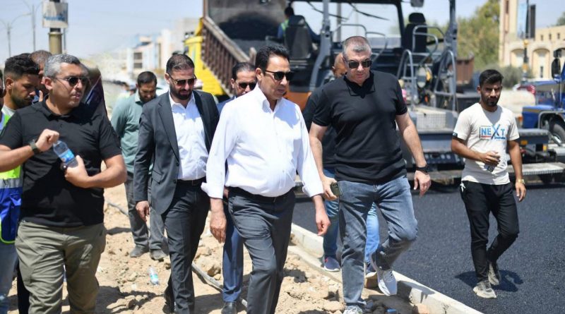 أشرف محافظ نينوى، عبد القادر الدخيل، ميدانياً على أعمال إكساء وتبليط الطبقة الأولى من مشروع تطوير الشارع الرئيس الممتد من تقاطع الجسر الرابع وصولًا إلى تقاطع منطقة الـ95.