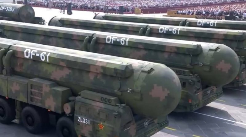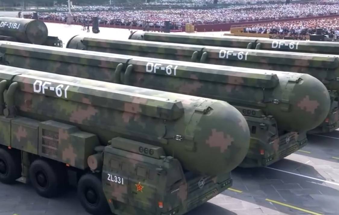 وقال معلق البث، “يمر أمامنا أول رتل من الصواريخ المزودة برؤوس نووية. ولأول مرة، تُعرض صواريخ جينجلي-1 التي تُطلق من الجو، وصواريخ جولانغ-3 الباليستية العابرة للقارات التي تُطلق من الغواصات، وصواريخ دونغفنغ-61 البرية العابرة للقارات، وصواريخ دونغفنغ-31 البرية العابرة للقارات معًا”.