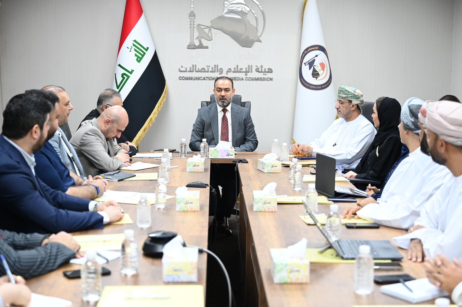 ترأّس د.نوفل أبو رغيف رئيس هيأة الإعلام والاتصالات اجتماعاً موسعاً مع وفد سلطنة عُمان رفيع المستوى، الذي ضمّ السفير العُماني في بغداد الشيخ محمود الخروصي، وممثلي وزارة النقل والاتصالات وتقنية المعلومات في سلطنة عمان وعدد من شركات الاتصالات وتكنولوجيا المعلومات المرافقة للوفد، بحضور مدراء الدوائر والكادر المتقدم للهيأة.