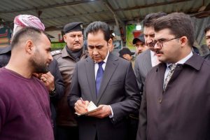 محافظ نينوى عبد القادر الدخيل، برفقة عضو مجلس المحافظة أحمد الكيكي، ومدير بلديات نينوى المهندس رعد الحديدي، ومدير ناحية فايدة عادل أمين عمر، يجري جولةً ميدانية في سوق ناحية فايدة، التقى خلالها بالمواطنين وأصحاب المحال التجارية، واستمع عن قرب إلى احتياجاتهم ومتطلباتهم، في إطار حرصه على متابعة الواقع الخدمي وتعزيز التواصل المباشر مع الاهالي.
